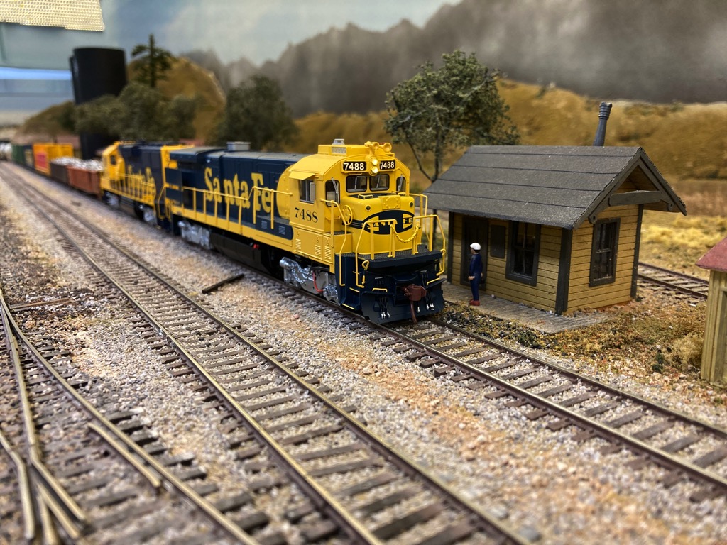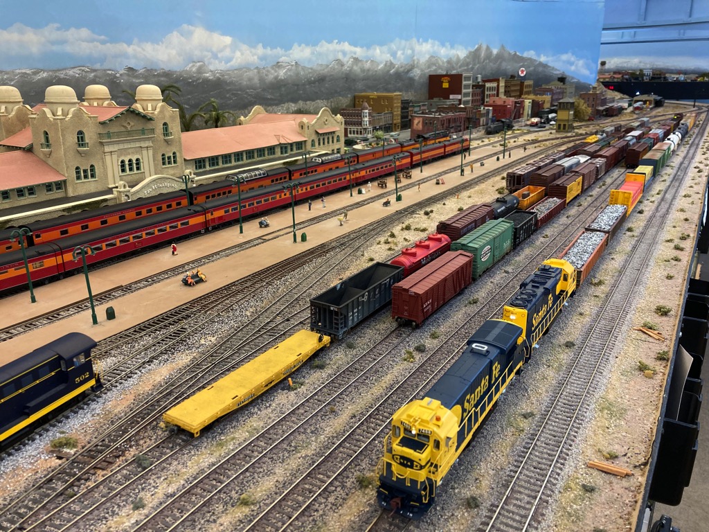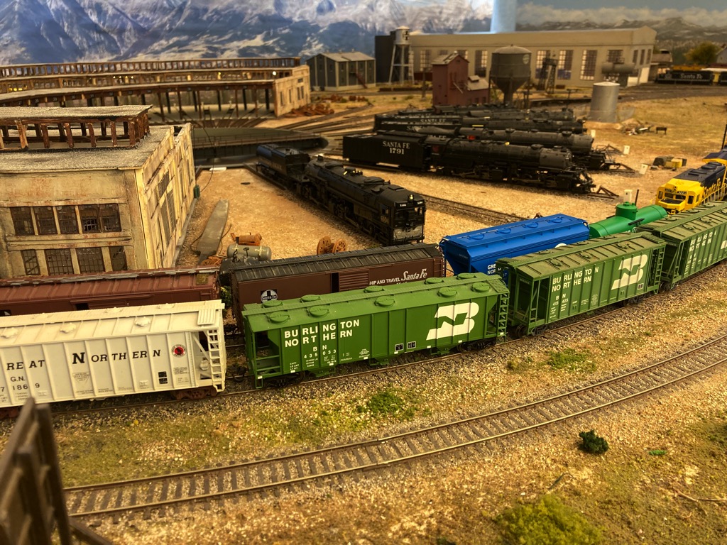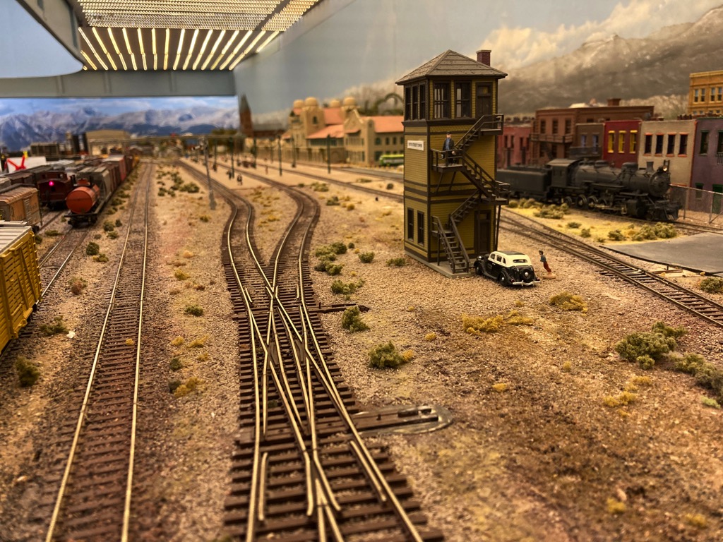 The Lower level of our layout models LaJunta, Colorado north to Denver on the Joint Line used by the Santa Fe and the Denver and Rio Grand railroads.