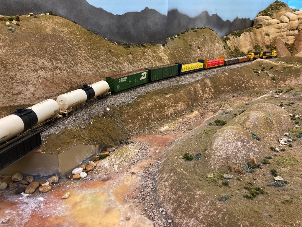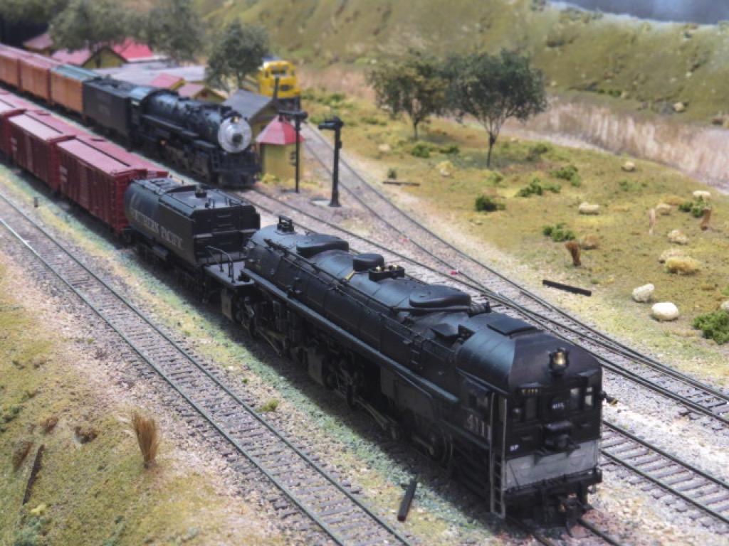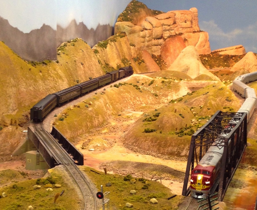 The upper level of our layout models 'The Big Hill of Southern California'. These tracks were used by the Santa Fe and Union Pacific.